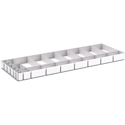 | Productnaam | Assortiment EKK35100. 24 kleingoedbak, Breedte: 1300 mm, Diepte: 750 mm, Hoogte: 75 mm, Type: Opbergbak |