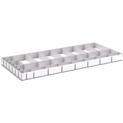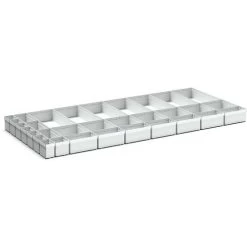 | Productnaam | Assortiment EKK36100. 32 kleingoedbak, Breedte: 1300 mm, Diepte: 650 mm, Hoogte: 75 mm, Type: Opbergbak |