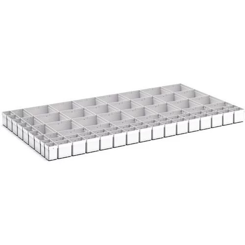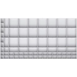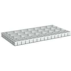- 71 vakken. Grijs kunststof.