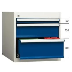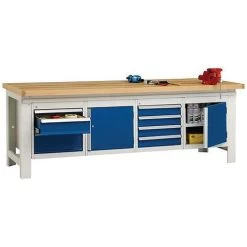 - Kasten met laden of deur die eenvoudig op het frame van de werkbank gemonteerd kunnen worden.