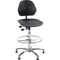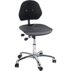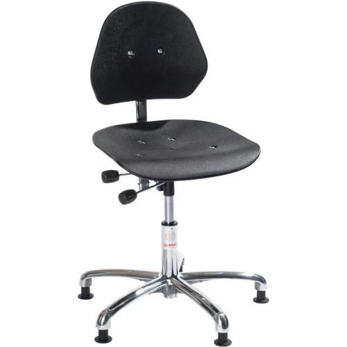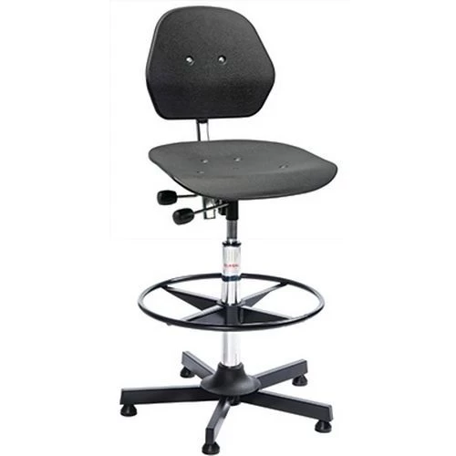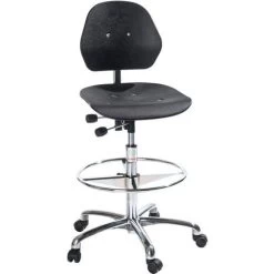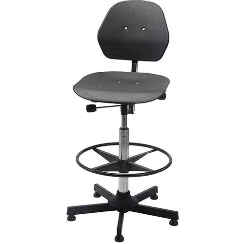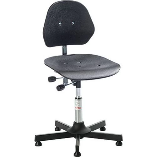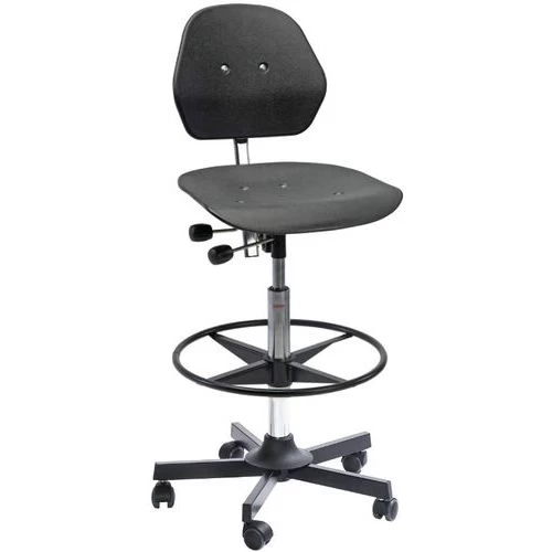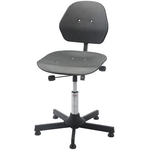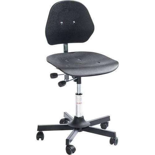- Een praktische en stevige werkstoel met zitting en rugleuning van schokdempend gegoten kunststof met schuim van gegoten polyurethaan.