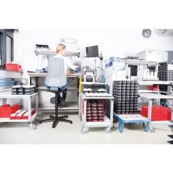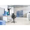 - Op deze ergonomische werkplaatsstoel met voetensteun kunt u zitten en toch vrij bewegen.