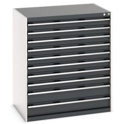 - Ergonomische handgrepen voor van boven of van onderen vastpakken, standaard met blokkeersysteem van laden, individuele vergrendeling van de laden als optie verkrijgbaar.