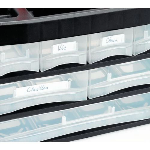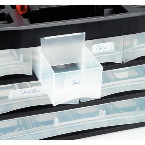 - Met handige etikethouder in de doorzichtige schuifladen.