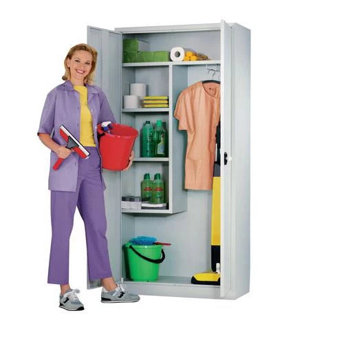 - Metalen onderhoudskast voor het opbergen van schoonmaakproducten.