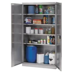 | Productnaam | RVS hoge kast, Max. belasting per legbord: 100 kg, Materiaal: Staal, Totale hoogte: 1800 mm |