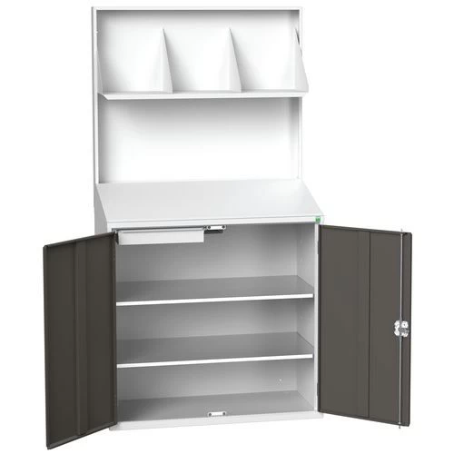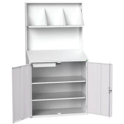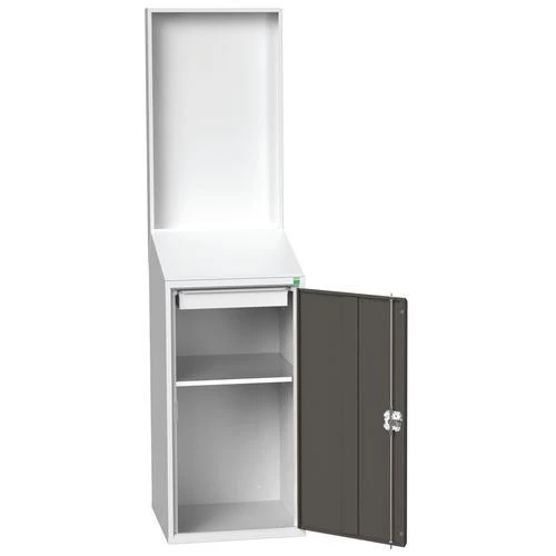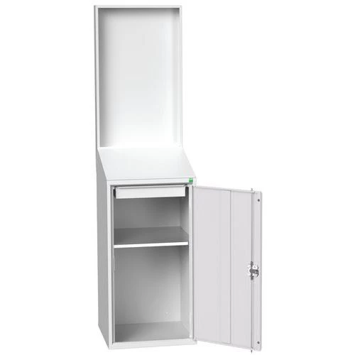 - Servicepost met achterpaneel en een hoge legplank.