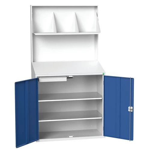 - Lage kast met 2 deuren, 2 legborden van gegalvaniseerd staal en 1 materiaallade.