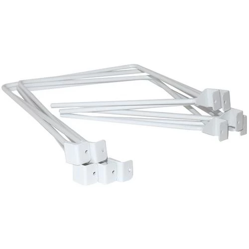 - Onderste legbord van staal hangt op de horizontale stangen.