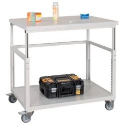 - Werkbank voorzien van 4 wielen, waarvan 2 geremde zwenkwielen.