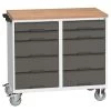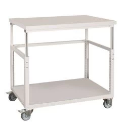 - Werkbank voorzien van 4 wielen, waarvan 2 geremde zwenkwielen.
