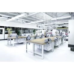 - Optimaal niveau van gebruikscomfort en ergonomie dankzij in hoogte verstelbare poten van de werkbank voor een ergonomische werkhoogte en een optimale ruimte voor de benen in het geval van zittende activiteiten en dankzij ons modulaire systeem