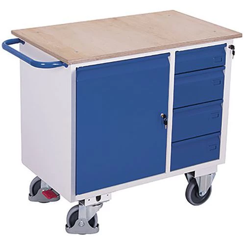 | Productnaam | Werkplaatswagen met 4 laden en 1 kast, Totale hoogte: 960 mm, Aantal laden: 4, Totale breedte: 1100 mm |